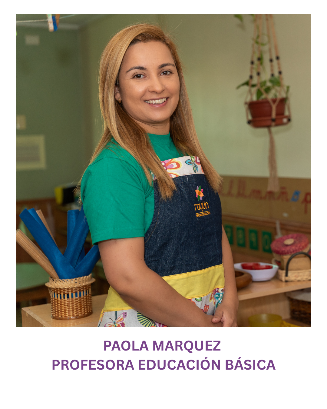 Apasionada por el conocimiento y el desarrollo humano, Silvana estudió Derecho en la Universidad de Chile y ejerció como abogada durante varios años. Sin embargo, su profundo amor por la infancia y el deseo de acompañar el desarrollo integral de sus hijas la llevaron a tomar una decisión trascendental: dejó atrás su carrera jurídica para prepararse y formarse como Guía Montessori, transformando así su vida profesional y personal.