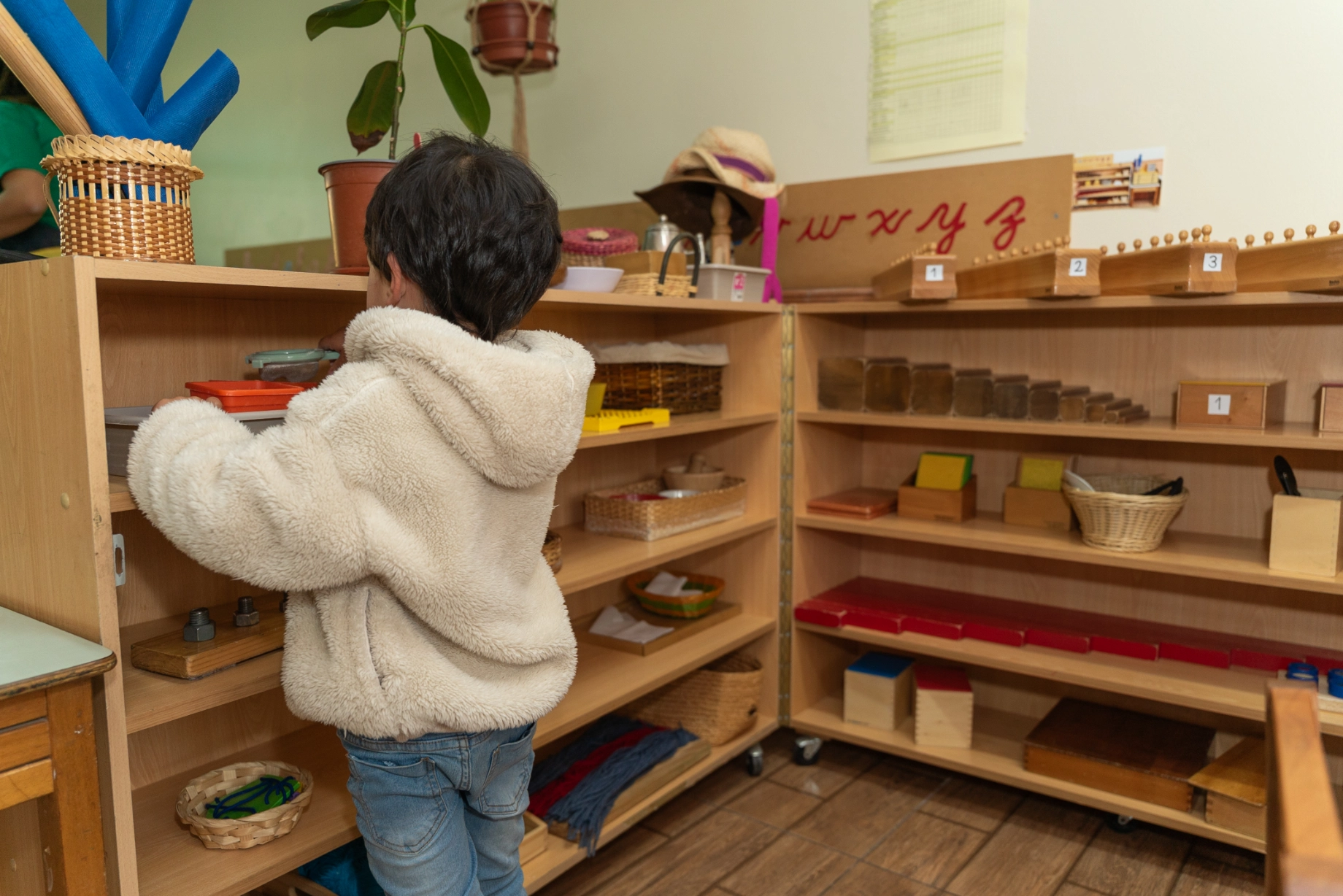 El ambiente está preparado con materiales que invitan a explorar, tocar, ordenar y repetir, favoreciendo el desarrollo del movimiento coordinado, la lengua, la autonomía y las habilidades sociales. Todo está a su altura: los muebles, los utensilios y el ritmo del día.